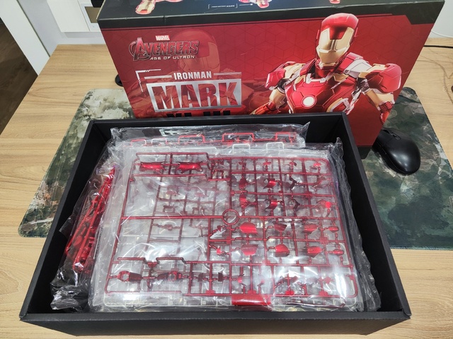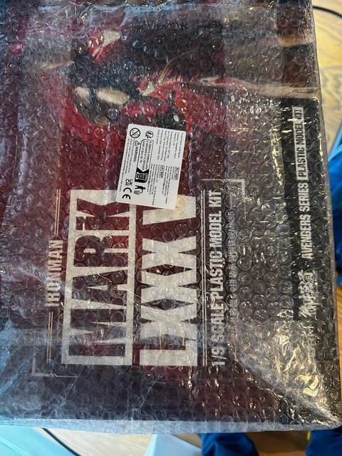 Item came with minimal damage to the box. Check everything before building. Mine was missing batteries for the LED’s. Plastic is fragile esp on the arm joints so be careful. Broke one hand and now I can’t replace the joint. Seller is great. Fast shipping too. Would buy more from them.